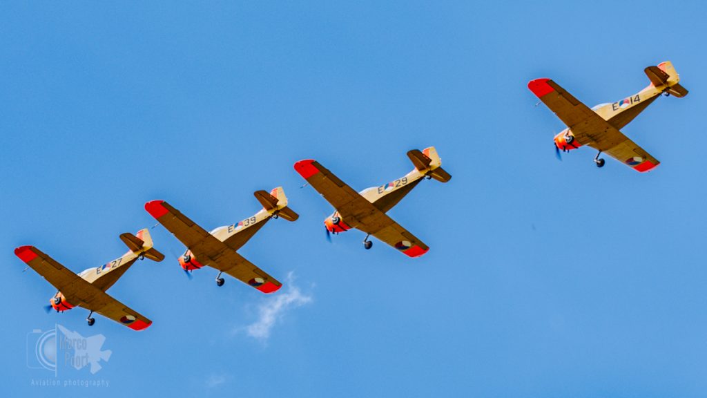 De laatste van de vier was de Fokker Four, die naar Twente (EHTW) kwamen voor een prachtige demovlucht boven het veld. Deze mensen weten donders goed hoe je een oudere dame moet behandelen! Zulke oude toestellen, en toch stunten alsof ze hagelnieuw zijn. De Fokker Four is een bekend demoteam uit Nederland, gestationeerd op vliegbasis Gilze-Rijen (EHGR). De Fokker S-11 stamt uit de jaren 50 en vliegt tot op de dag van vandaag voor de Koninklijke Luchtmacht. De demo vlucht was na aanleiding voor de stichting hoogvliegers die die dag werd georganiseerd op het veld.